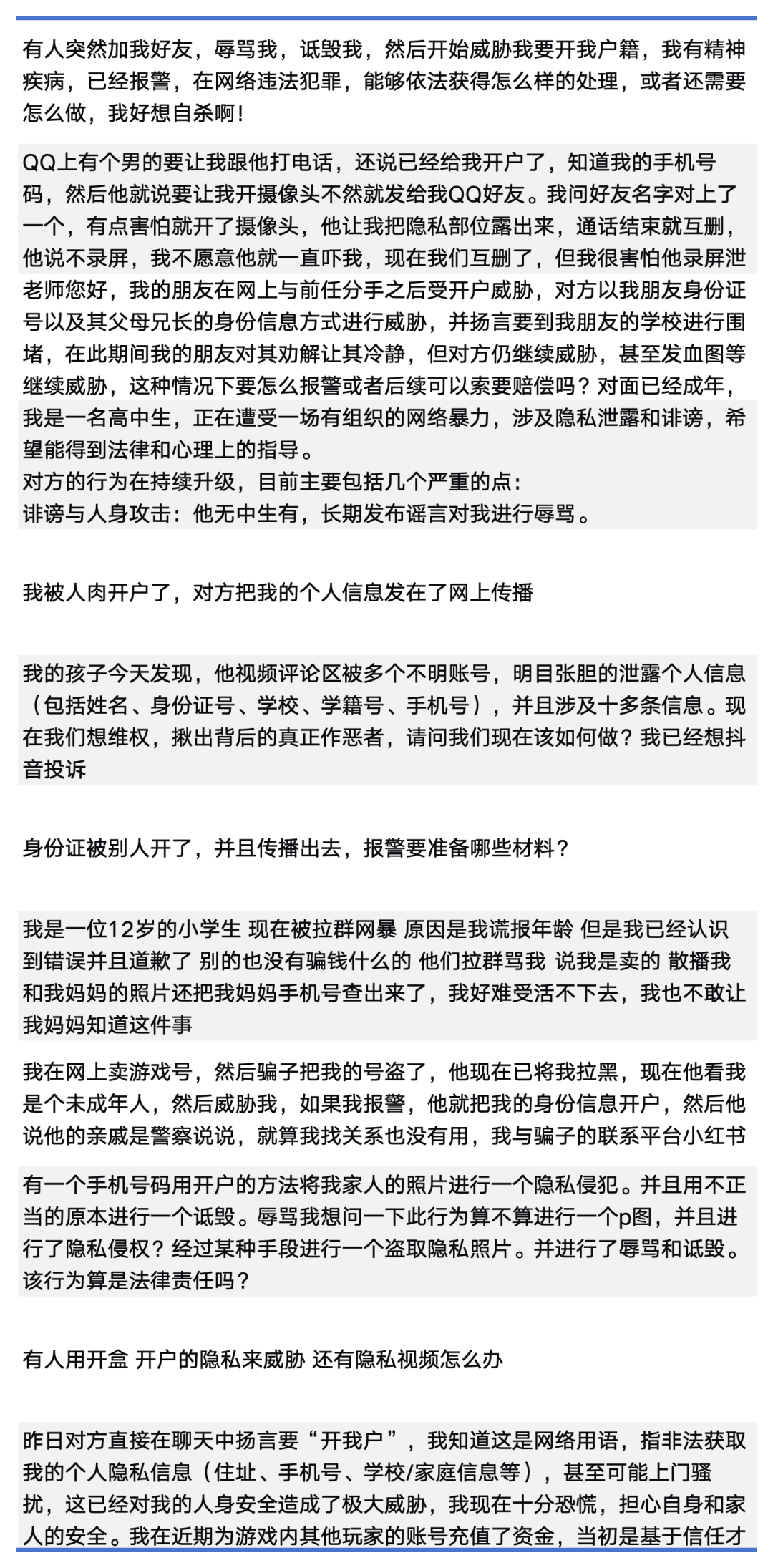 我中心近期处理的部分涉开盒、群体性网暴咨询