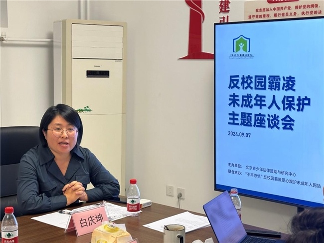 北京青少年法律援助与研究中心白庆坤律师在会上发言。北京青少年法律援助与研究中心供图。